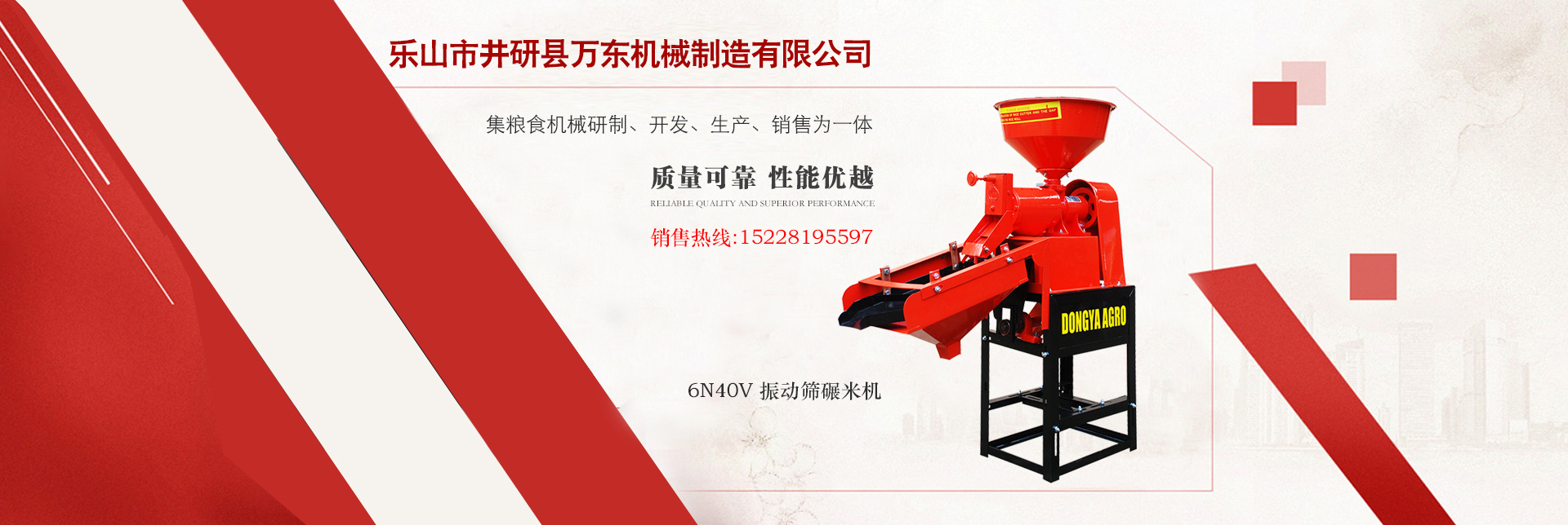 樂山市井研縣萬東機械制造有限公司注冊于2015年,集糧食機械研制、開發(fā)、生產、銷售為一體。技術力量雄厚,加工設備優(yōu)良,品種齊全,質量精湛。公司主要生產碾米成套設備和谷物烘干、清理、去石、礱谷、谷糙分離、碾米、白米整理、拋光、包裝等糧食加工機械,并提供大型碾米成套設備的設計、安裝及服務。產品質量******、性能優(yōu)越,暢銷全國各地,并遠銷東南亞及日本地區。      “質量過關,用戶至上”是我們一貫信奉的經營理念,以“誠信”為己任,用良好的服務來回報新老客戶對我們的支持與厚愛,攜手共創(chuàng)輝煌的明天。